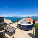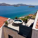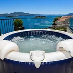 Die Villa in Janjina verfügt über ein Badezimmer mit einer Wellness-Badewanne, einer getrennten Toilette und einer Dusche. Ein Haartrockner, Morgenmäntel und Hausschuhe sorgen ebenfalls für Ihren Komfort.